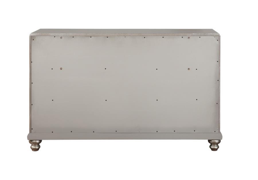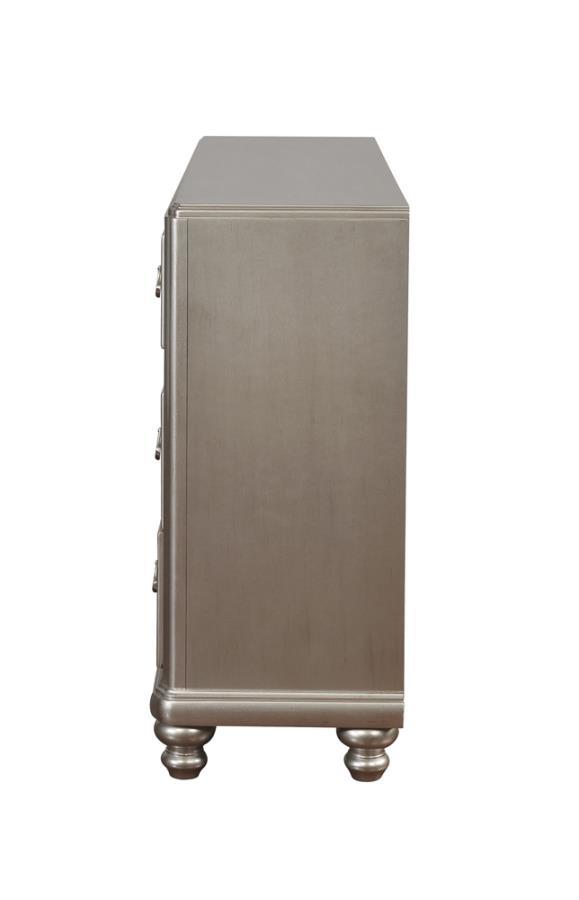 Accentuate the style of your master suite with luxe, opulent glamour. this dresser makes for an exquisitely elegant enhancement to your everyday routine. gorgeous and glam, it features a highlight glaze over a shining metallic finish for sophisticated appeal. felt-lined top drawers and a classic silhouette add a luxurious touch of style. this dresser includes protective drawers for added privacy and peace of mind.