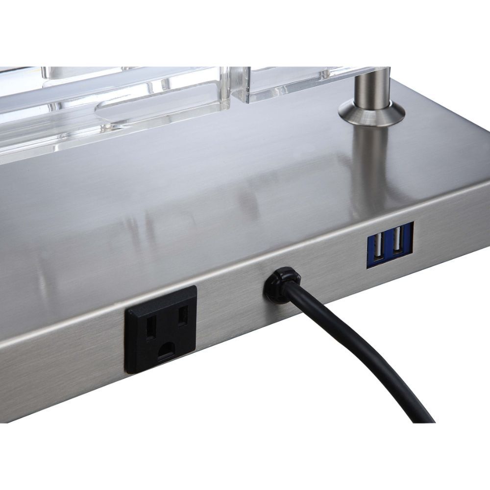 - Base: Sandy Nickel Finish, Material: Metal with Power & USB Dock, Acrylic Media Holder: Clear Finish
