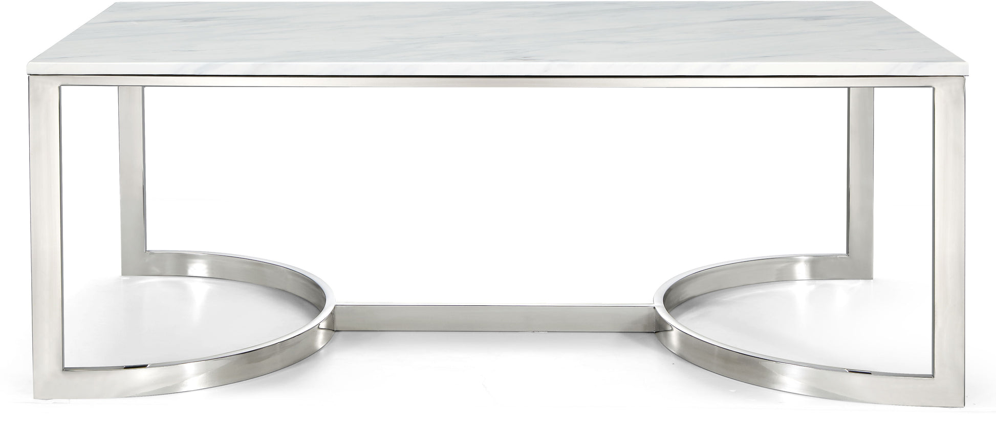 Lend your living room or den a modern slant with the Copley coffee table from Meridian Furniture. This coffee table features geometric bases, and a sleek chrome finish that gives your space a bold, up-to-the-minute look. Each table has a solid stone top for durability and style.