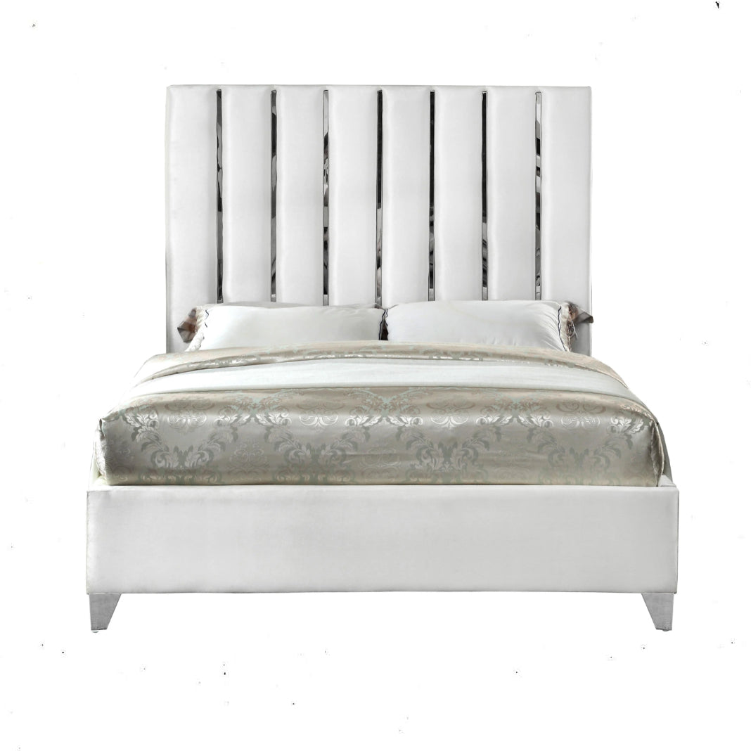 Create a bold yet welcoming sanctuary in your bedroom with this Enzo Bed. The channel design features velvet fabric upholstery for a sleek, glamorous look. The legs provide support for the plank-style base, ensuring durability and long-lived beauty. slats are included, making setup easy and quick. No box spring is required with this bed, so you can use it with your choice of mattress.