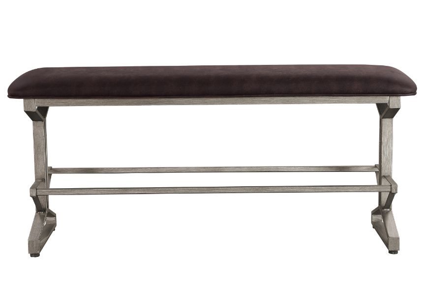 Seating is essential to your dining room décor. This versatile bench will bring in industrial home bar designs into your space. It offers a rectangular seat cushion with rustic brown upholstery for a great texture and feel. Metal cross base with footrest gives the bench extrem surpport and style. Create an ideal place where friends can sit long enough to share drinks and meals with Evangeline Counter Height Bench.