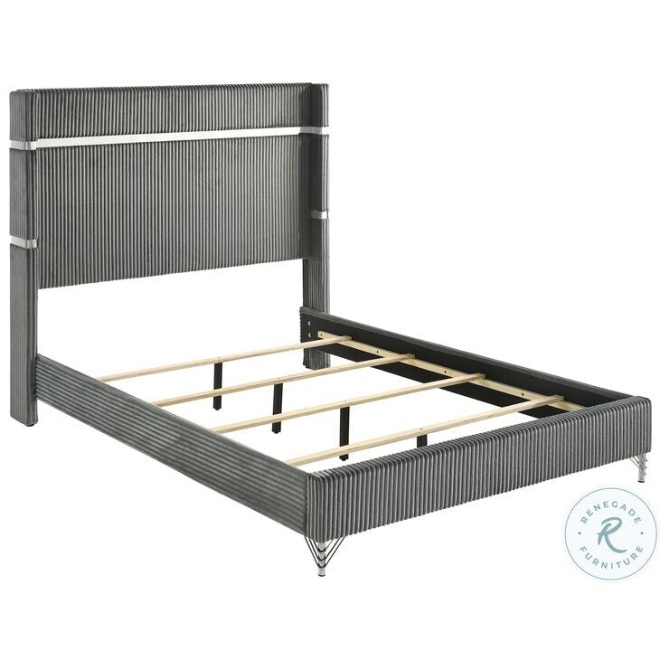 * Chic touches bring glamour and elegant flair to a modern upholstered bed