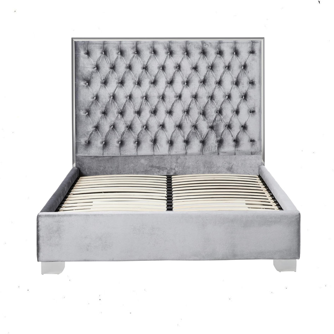 Make the Lexi velvet bed part of your dream bedroom setup. This bed has all of the bells and whistles you want, including a super tall headboard that stands nearly five-feet tall. The bed is covered in velvet fabric for a luxe look, and it's deeply tufted for added luxuriousness. The headboard is soft and welcoming against your back and head as you read or watch TV in bed, and the bed rests on legs for dependable sturdiness and durability. Use it without a box spring or foundation, since the slats are included.