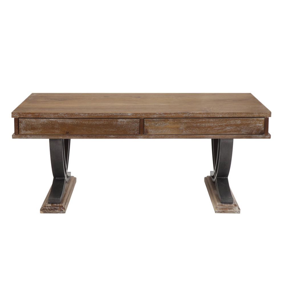 KD, Rectangular Coffee Table • Storage: 2 Drawers (Open Base) •• CONSTRUCTION •• Wood Top & Drawer: Acacia Wood, Wood Veneer, MDF • Metal Stand with Wood Base: "X" Shape Stand, Metal Tube •• Drawer: GLIDE Center Wood (2/3 Ext.), DOVETAIL English, Felt-Lined Not Included, Safety Stop Included, Manual Close, Hardware: Not Included
