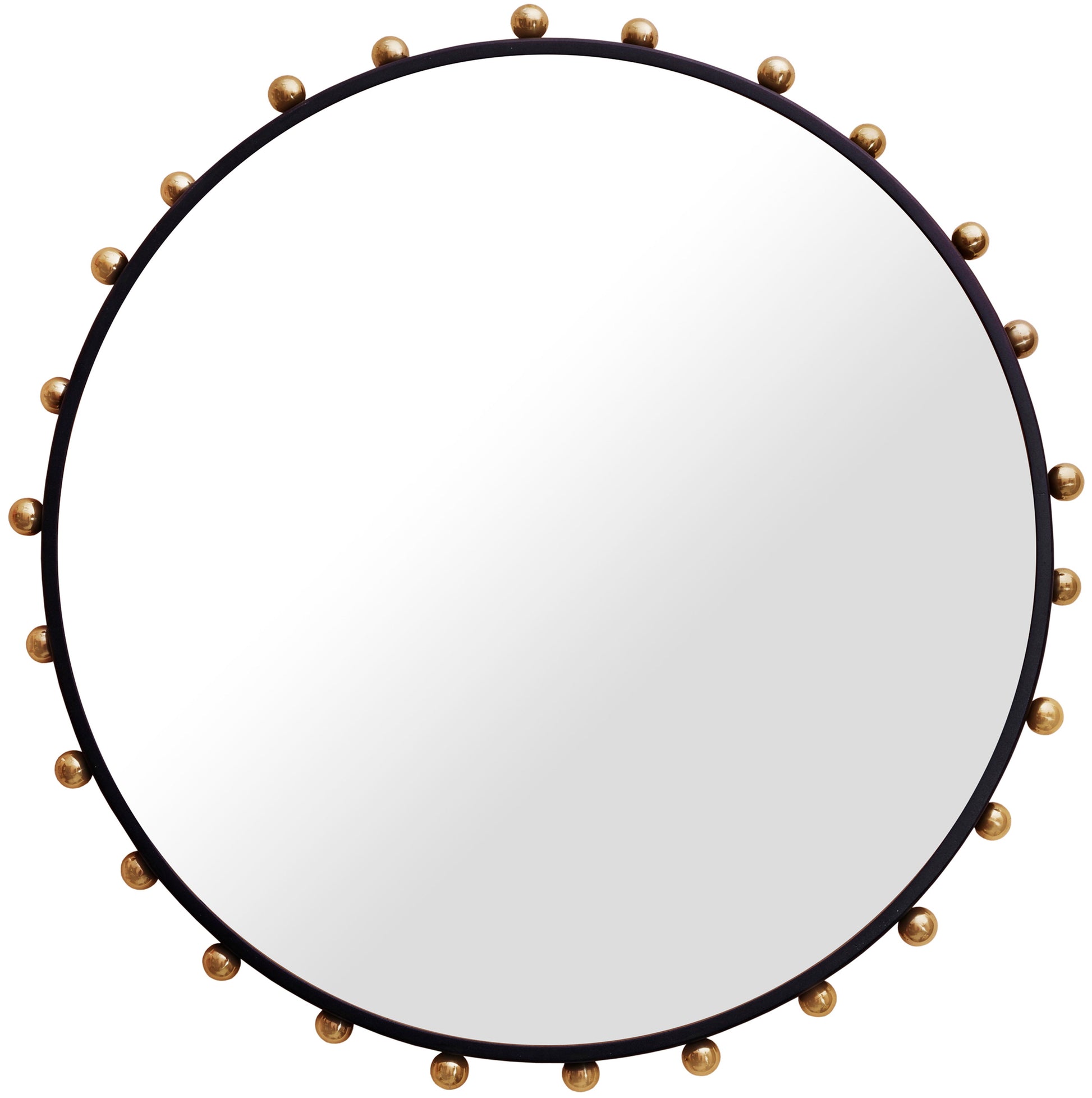 Draw instant attention to your wall space with this Raven Mirror. This beautiful mirror offers an ultra-contemporary style boost to your wall with its round frame in stark matte black and accentuated by brushed gold knob accents that run around the entire perimeter of the mirror. Hang this black and gold mirror wherever you want to add a hint of excitement while bringing a light, airy feel to your room.