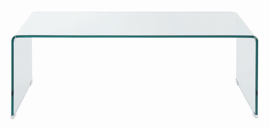 This magnificent coffee table has a timeless yet contemporary design. it's a clear, single-piece table that adds class and elegance to the home. rectangular table top is designed to hold accessories like a decorative vase or a tray of snacks and drinks for guests. the open space design in lieu of a base allows for a potted plant or decorative wicker basket to be placed directly on the floor. it gives any den or living room an appeal that's both eye-catching and enduring.