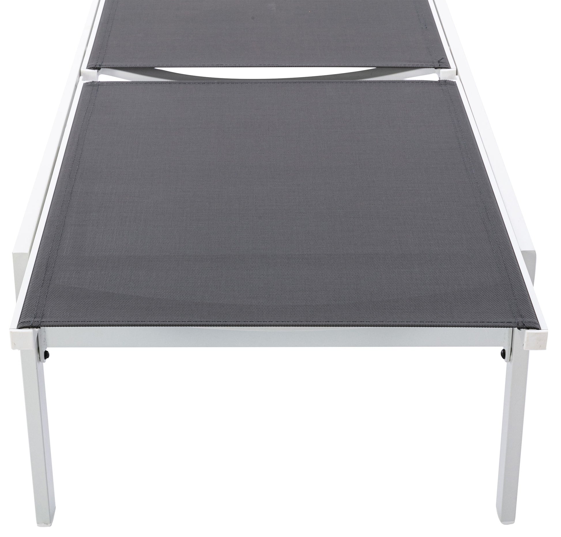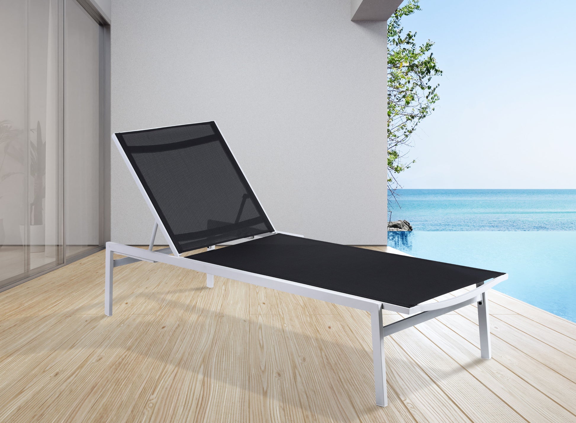 Sit back, relax, and let the cares of the day float away when you're stretched out in this Santorini Outdoor Patio Chaise Lounge Chair. This stunning chair is just the thing for sunworshippers to lie upon while catching a few rays. A sturdy aluminum frame gives it a resilient touch, and the lounge chair is adjustable, so you can easily get comfortable Mesh waterproof fabric completes the look and adds to the chair's airy feel.