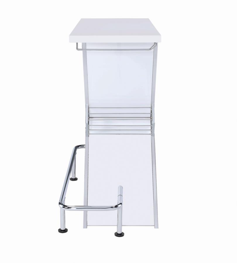 Complete a modern motif with the visual intrigue from this stylish bar unit. bold in color and design, the hourglass-inspired silhouette welcomes an art deco-inspired feel. great for a living room or transitional space, the crisp white hue sleekens and elongates. keep all libation necessities at hand with the built-in foot bar, stemmed glassware holders, and bottle storage. this contemporary style helps to dazzle and delight.