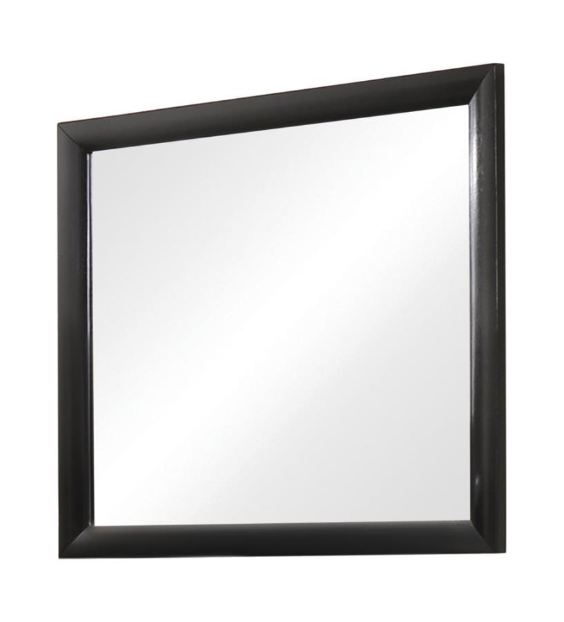The briana collection presents this high, wide mirror for the dressing room or bedroom. it is an ideal companion with the dresser from the same set. yet, it's just as appealing hanging solo on the bedroom wall. the mirror is framed in rich black that has a timeless allure. it has a simple, clean aesthetic that's pleasing to any taste.