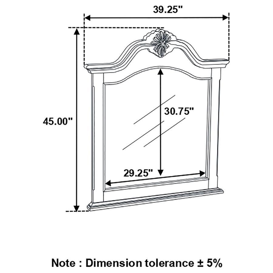 Lengthen even the smallest of rooms with this classic european-inspired mirror. create a stunning visual with the rich and warm cappuccino finish. clean lines with raised edges create a delicate frame that celebrates traditional design. featuring a sharp and elongated curve topped by crowned molding and carved details, the top of the mirror adds refined balance above a dresser. open up a room and reflect light with the novelty silhouette.