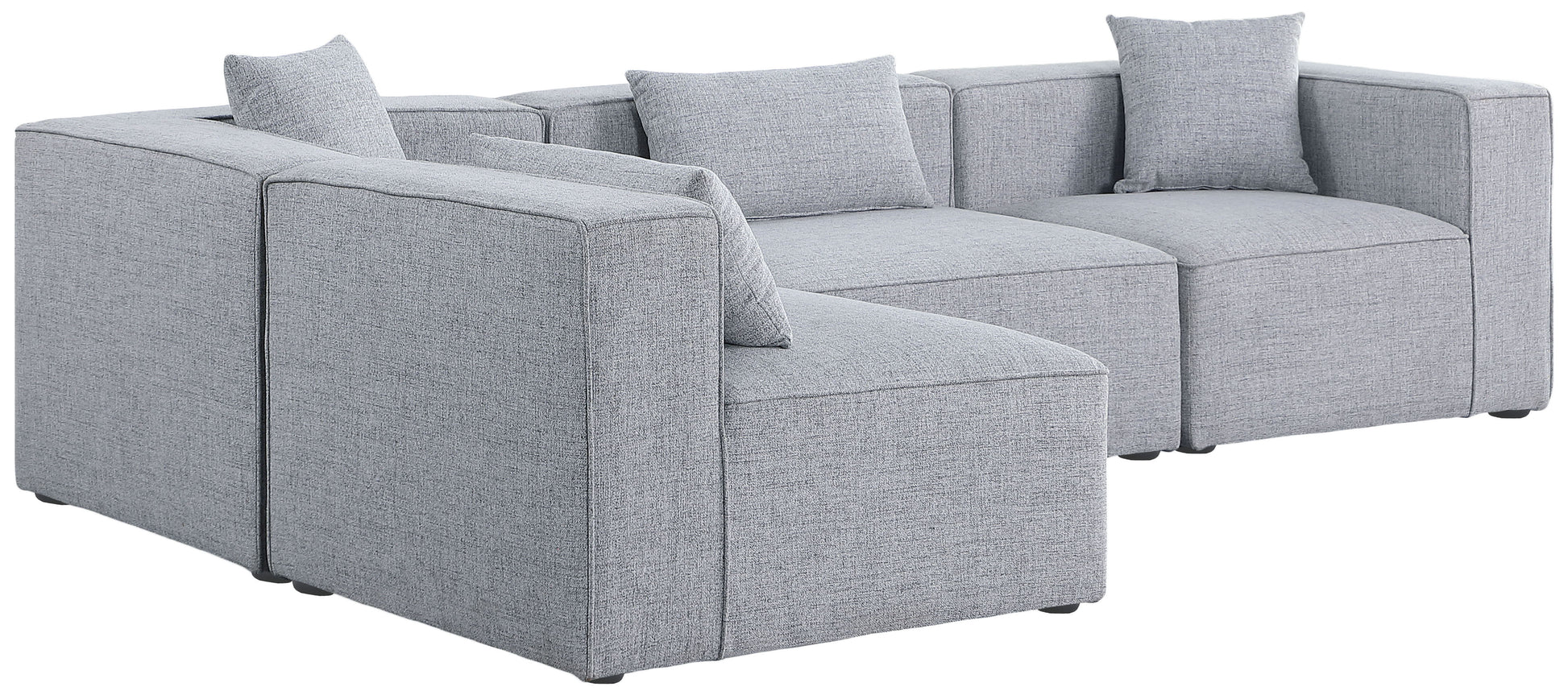 Mix and match the pieces in this Cube modular section to personalize its fit for your space. This modular unit features soft grey linen upholstery that's not only beautiful to behold but is easy to care for an maintain. Attachment latches beneath each piece of this sectional make it a simple feat to put the pieces together to meet your specific preferences. Choose other items from the Cube lineup to expand the sectional as desired.