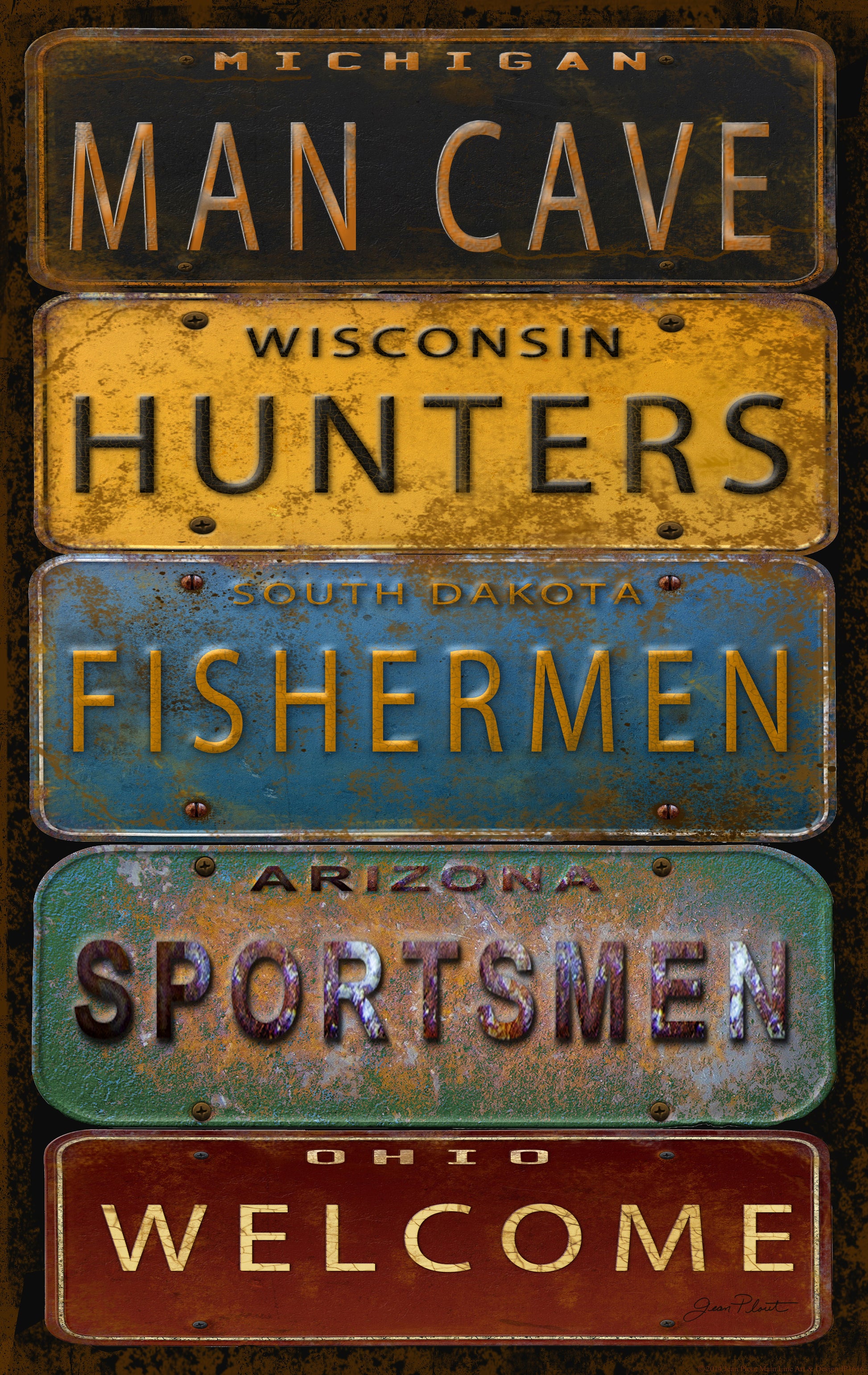 Framed - License Plate Man Cave By Jean Plout