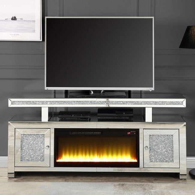 Modern Mirrored & Faux Diamonds TV Stand with Fireplace