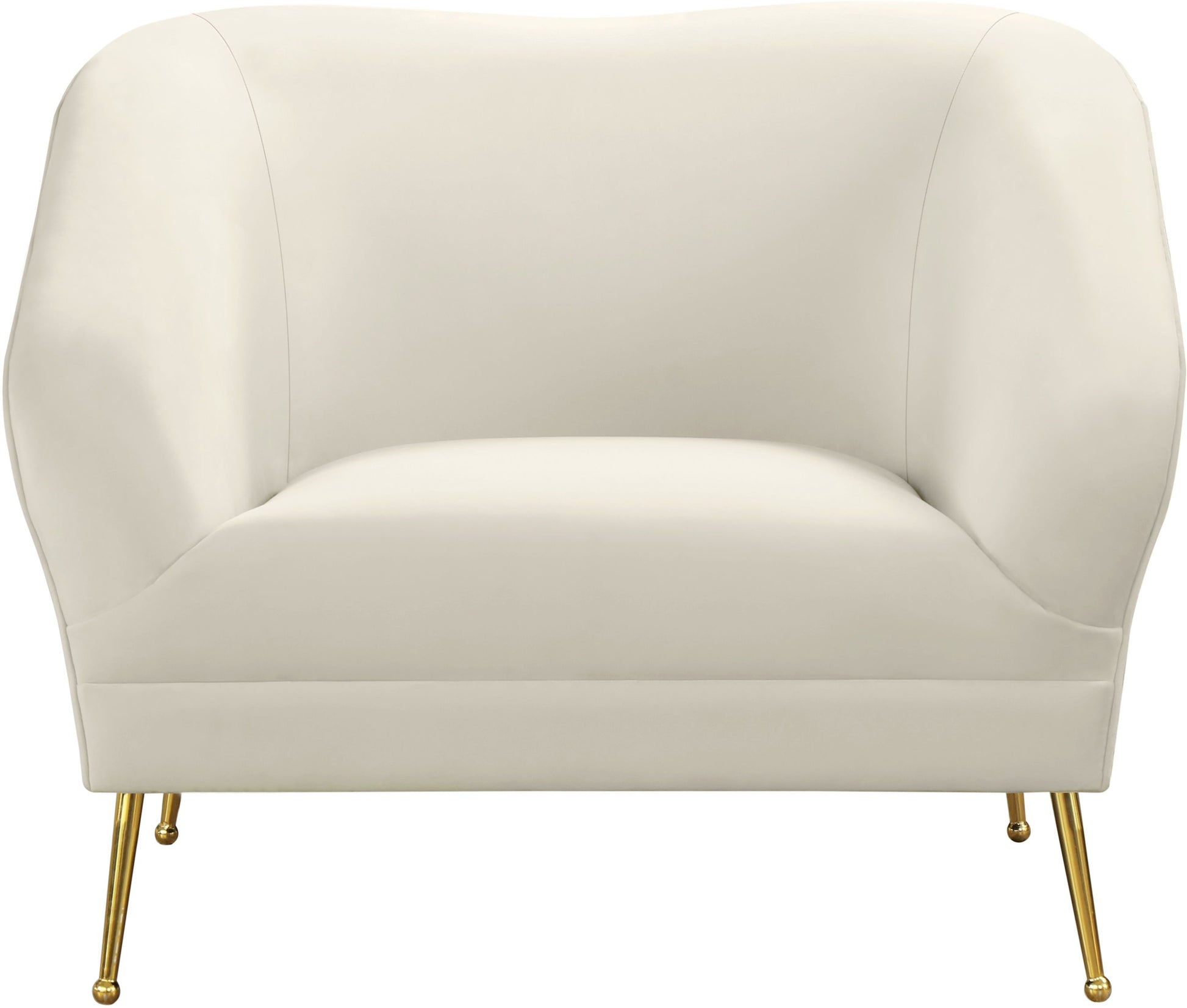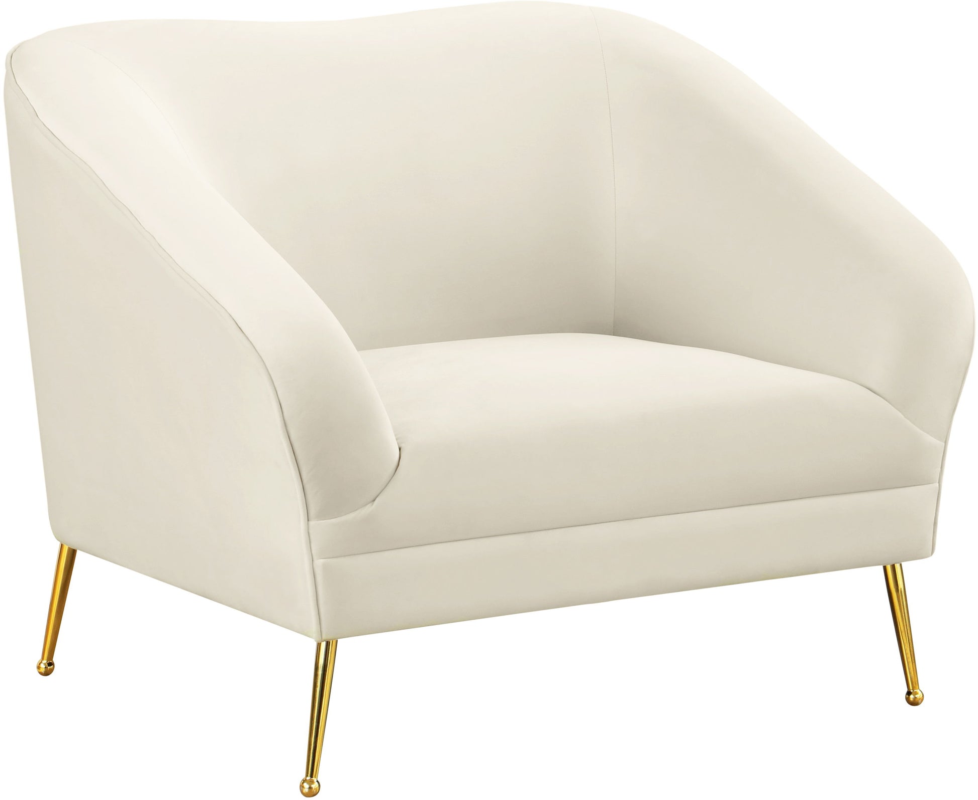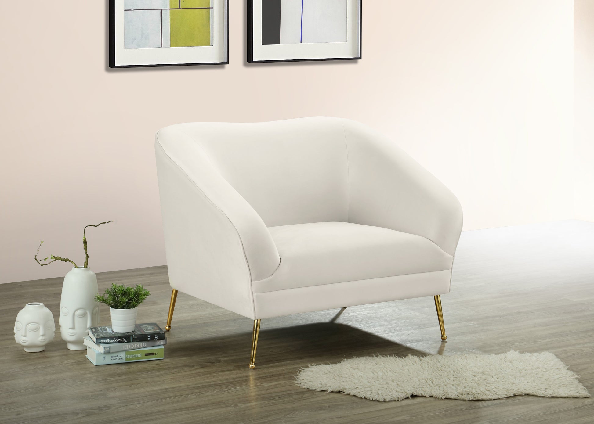 Create instant drama in your room with this Hermosa Chair by Meridian Furniture. The mid-century design makes the chair a true standout among other furnishings, with its sleek curved back and arms that create an aesthetically pleasing silhouette. The soft velvet upholstery feels sleek and sumptuous to the skin and gives your room an upscale look.