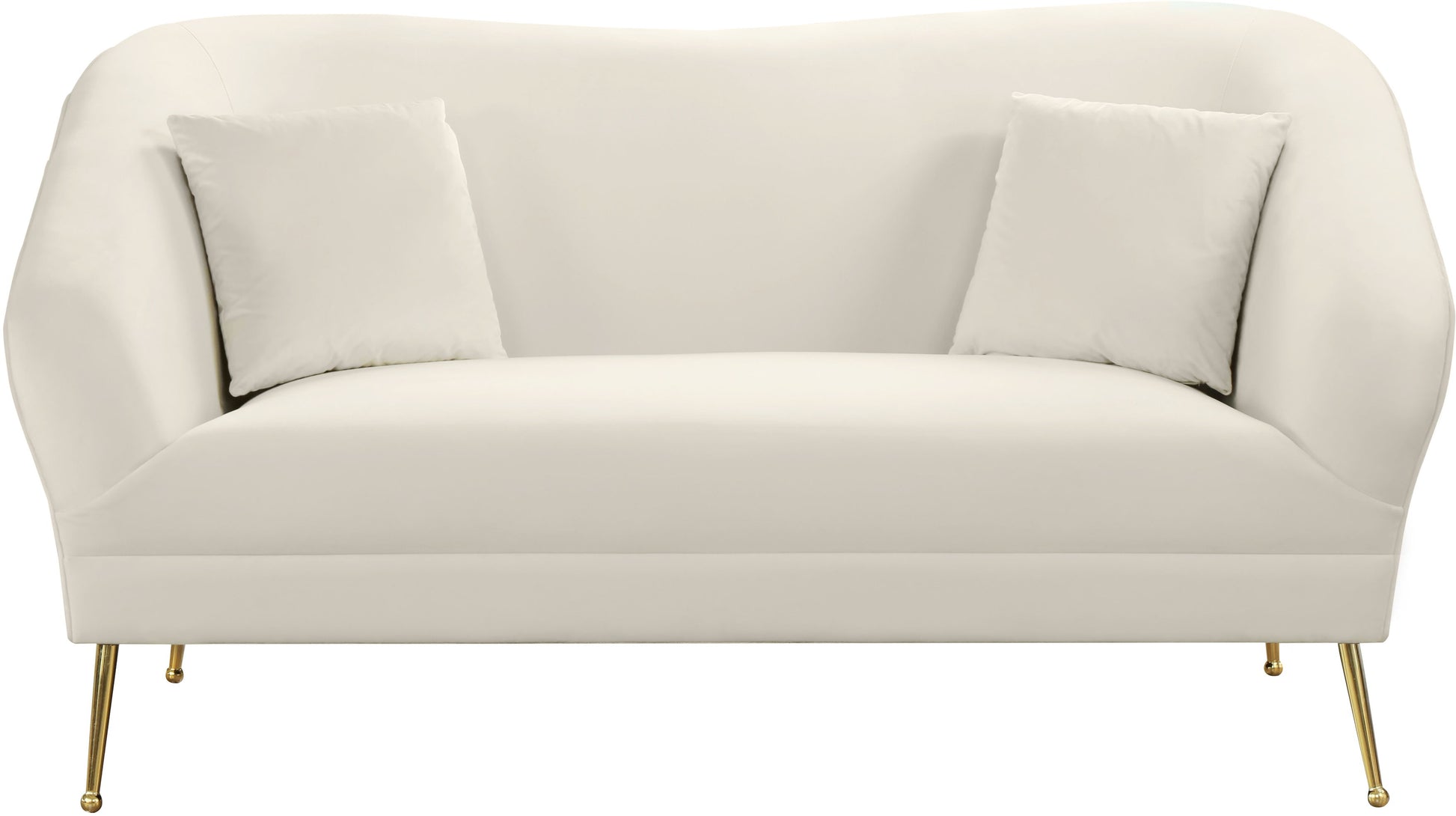 Create instant drama in your room with this Hermosa Loveseat by Meridian Furniture. The mid-century design makes the loveseat a true standout among other furnishings, with its sleek curved back and arms that create an aesthetically pleasing silhouette. The soft velvet upholstery feels sleek and sumptuous to the skin and gives your room an upscale look.