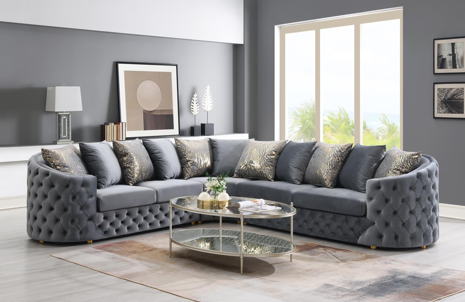 Elegant and eye-catching, the stunning Velvet Sectional from Emporium Home is the perfect addition to any space.