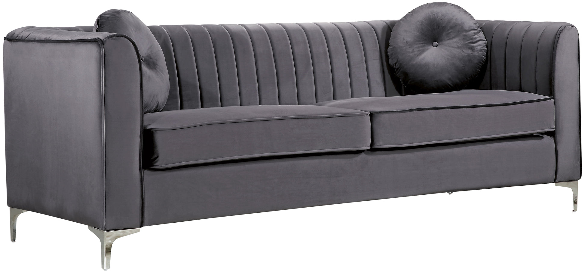 The Isabelle Collection by Meridian Furniture. Features beautifully designed velvet upholstery with custom legs. This collection is guaranteed to be the highlight of any home. Throw pillows included.