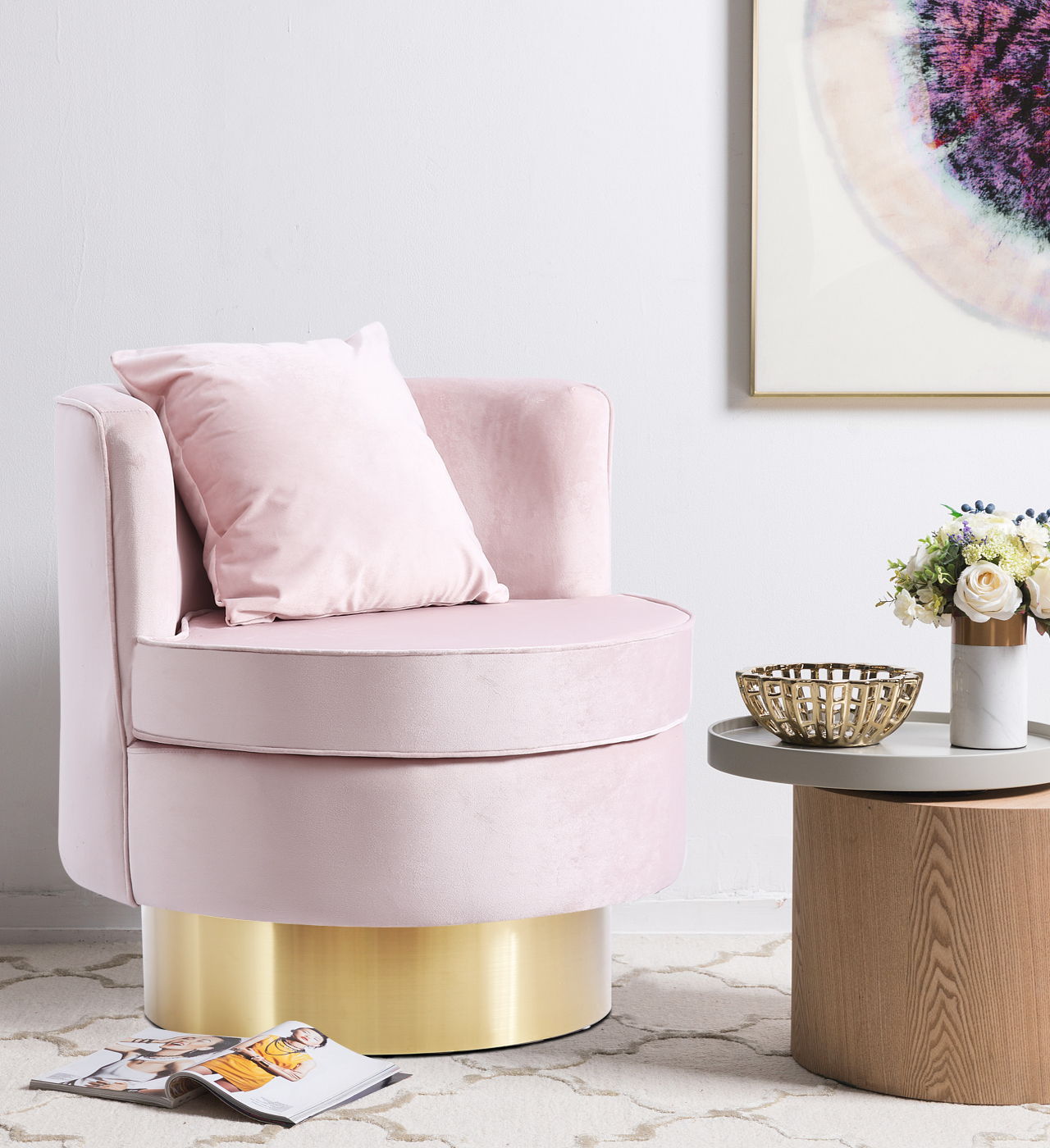 All eyes will be on this grand piece when you complement your living room with this bold velvet Kendra accent chair. Upholstered in stunning rich cognac-colored velvet, this contemporary chair's round design is not only boldly fashionable, but provides you with the utmost comfort while you sit. A swivel base complements its gallant color, while also making it easy for you to turn this way and that while seated.