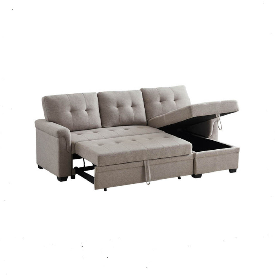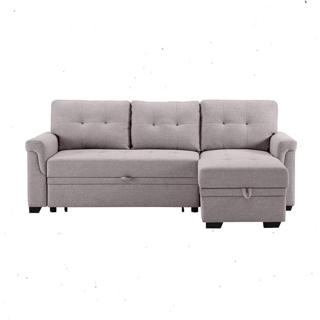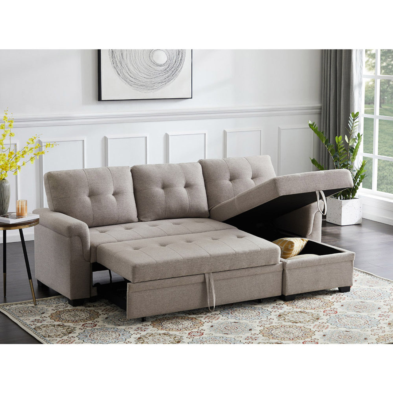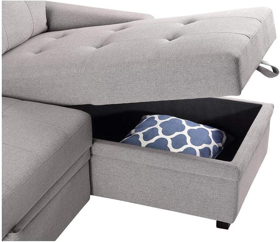 Luca Light Gray Linen Reversible Sleeper Sectional Sofa with Storage Chaise