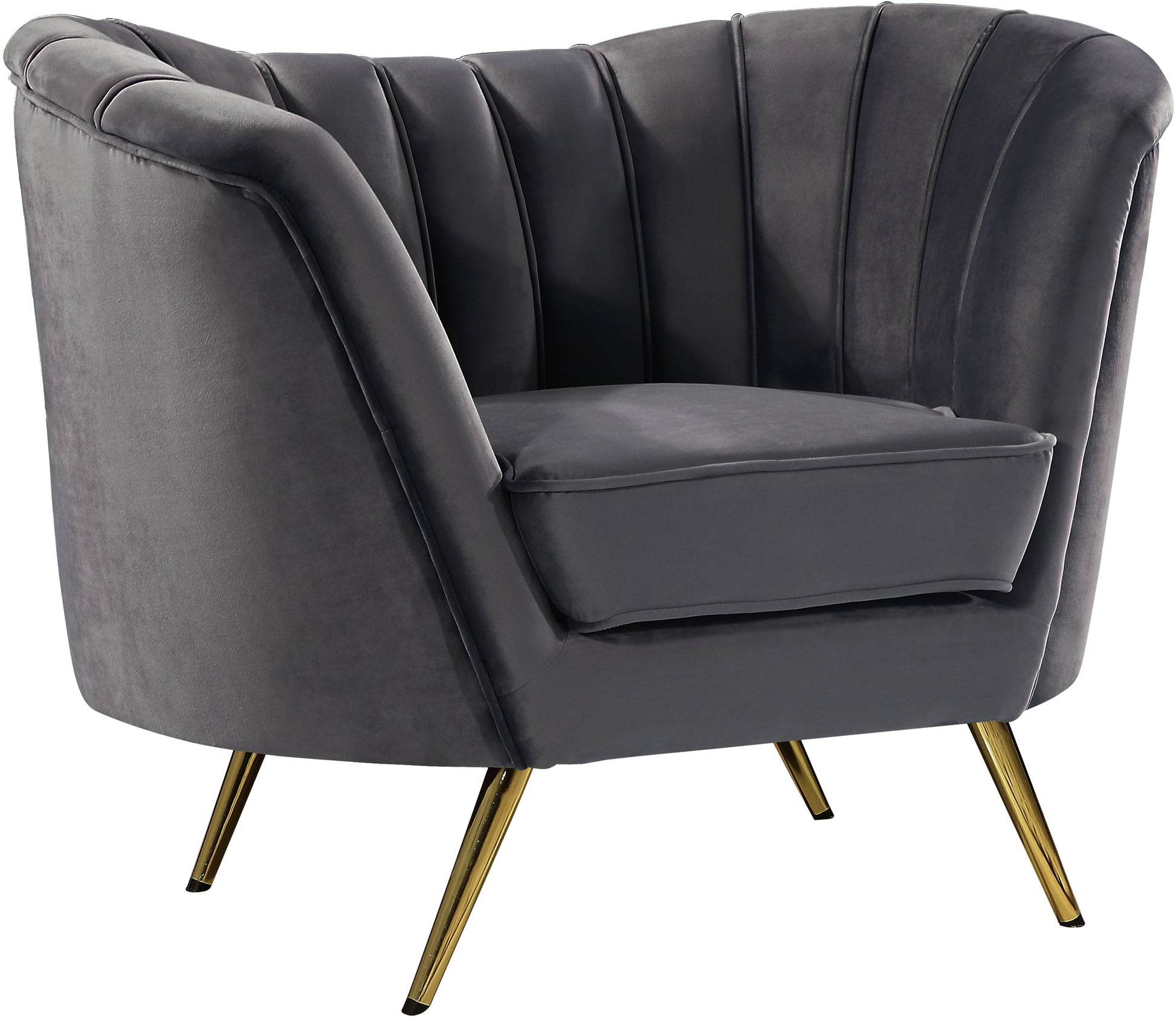 Lean back and lounge in luxurious style on this stunning Margo velvet chair by Meridian Furniture. This contemporary chair features plush velvet upholstery that is both classy and sumptuous against your skin, and rounded arms that curve into a low, rounded back, creating a perfect, modern piece for your home. stainless steel legs support this chair and provide stunning contrast to the chair's plush, fabric.