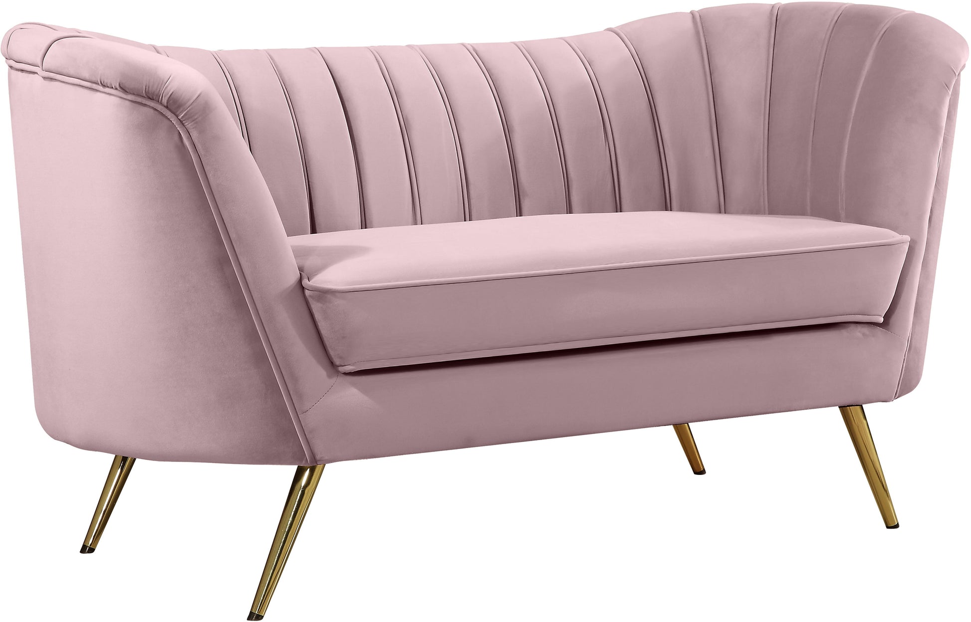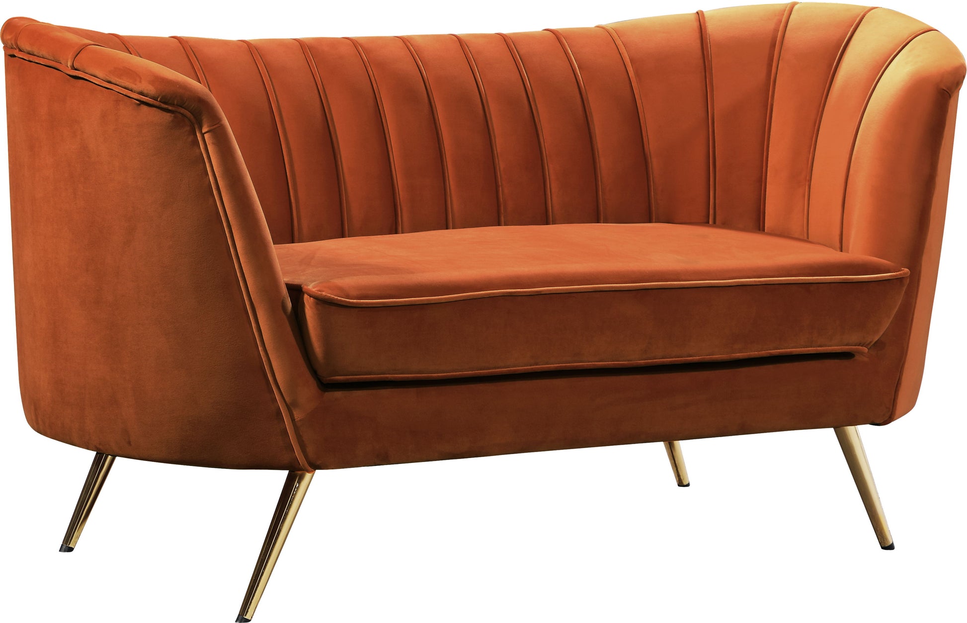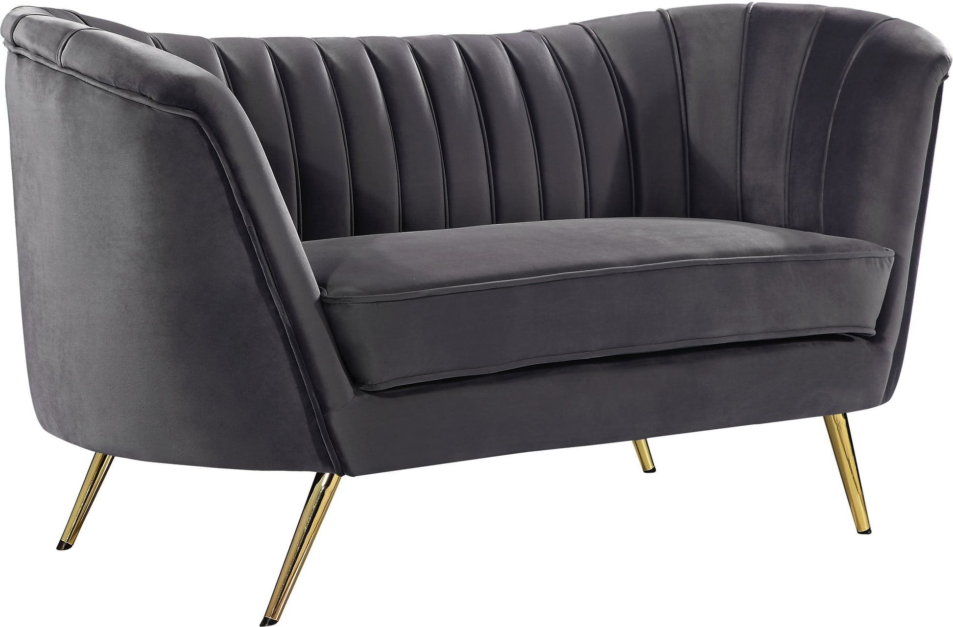 Lean back and lounge in luxurious style on this stunning Margo velvet loveseat by Meridian Furniture. This contemporary loveseat features plush velvet upholstery that is both classy and sumptuous against your skin, a single seat cushion and rounded arms that curve into a low, rounded back, creating a perfect, modern piece for your home. stainless steel legs support this loveseat and provide stunning contrast to the loveseat's plush, fabric.