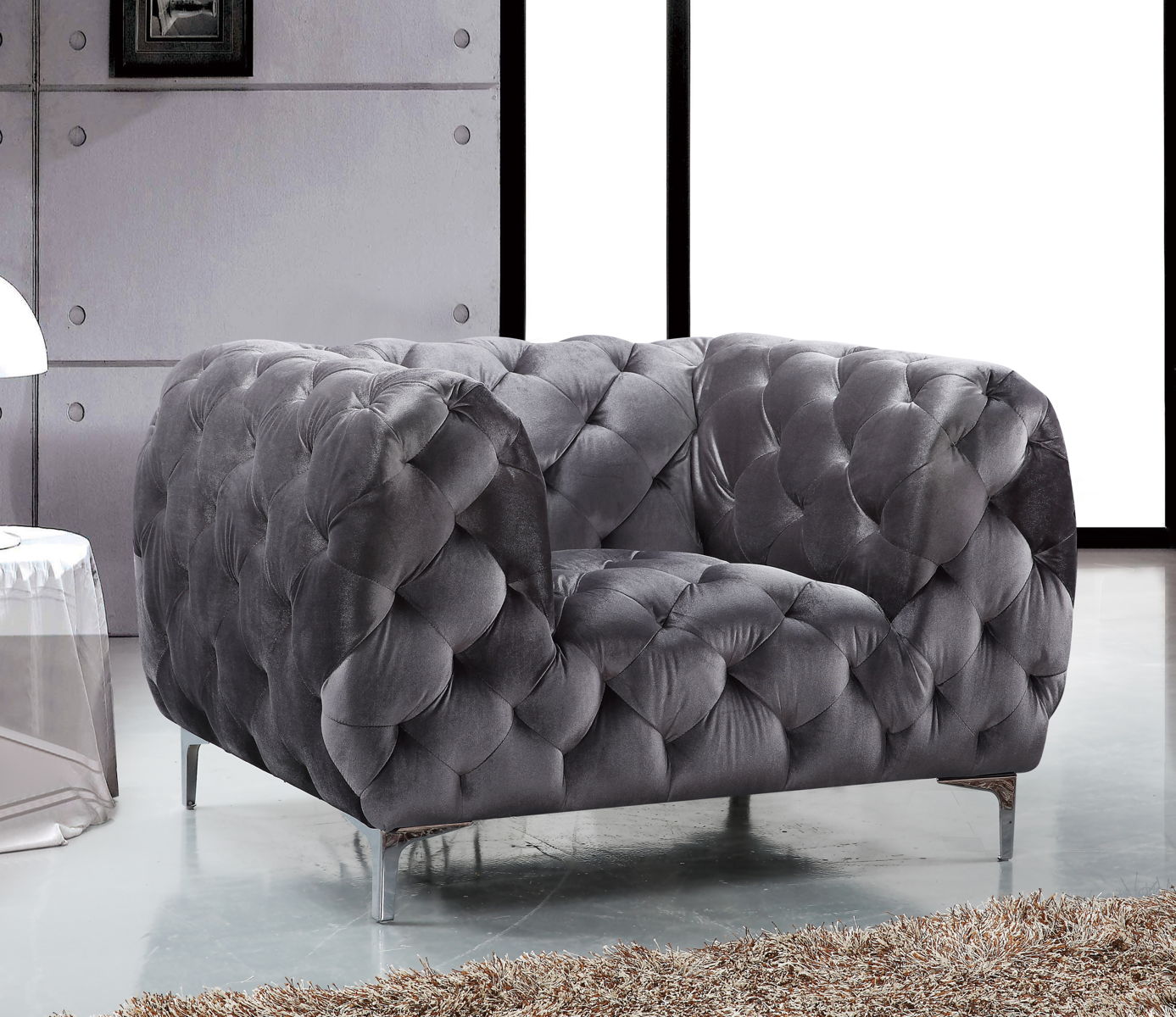 Elegant and eye-catching, the stunning Mercer Living Room from Meridian Furniture is the perfect addition to any space. covers the plush, comfortable seat, padded with high-density foam and modern tufted design. Strength and beauty is guaranteed with a solid wood frame and legs.