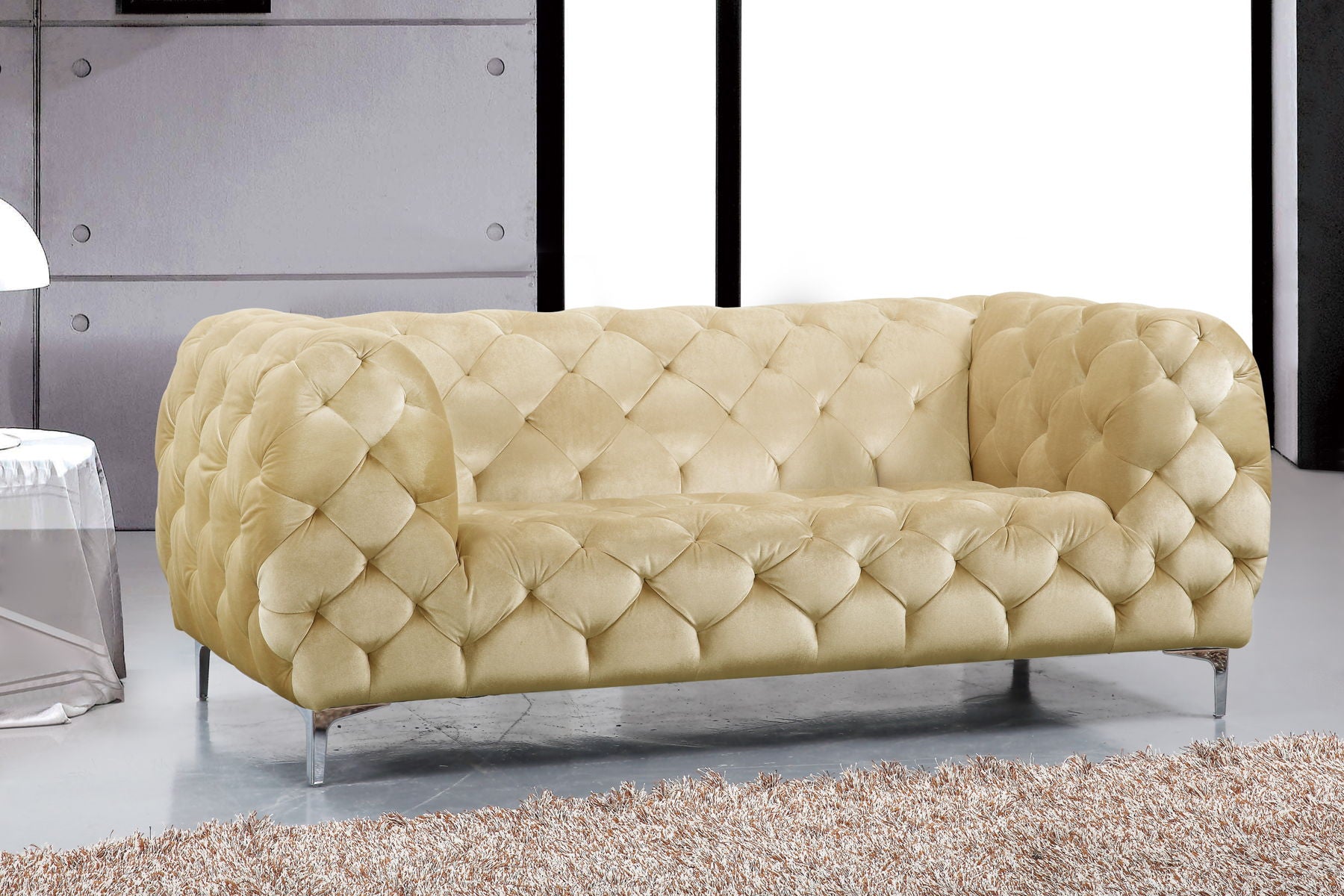 Elegant and eye-catching, the stunning Mercer Living Room from Meridian Furniture is the perfect addition to any space. covers the plush, comfortable seat, padded with high-density foam and modern tufted design. Strength and beauty is guaranteed with a solid wood frame and legs.