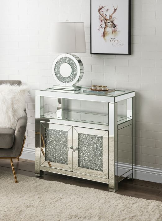 Noralie - Cabinet - Clear Glass, Mirroed & Faux Diamonds