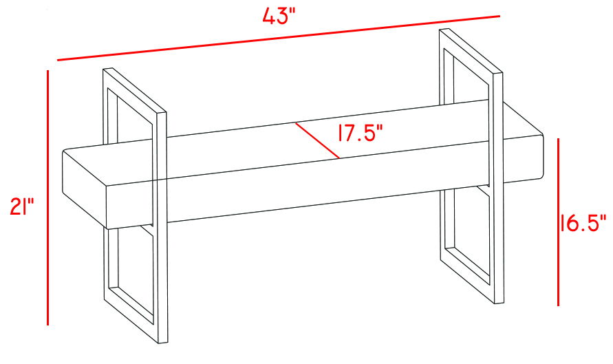 43.0"W x 17.5"D x 21.0"H - 58.0 lb