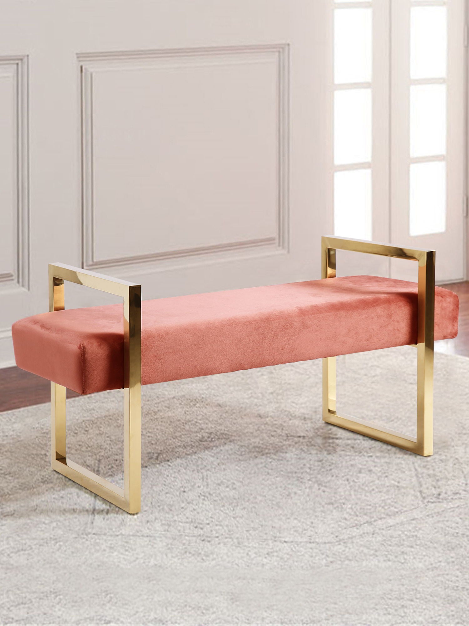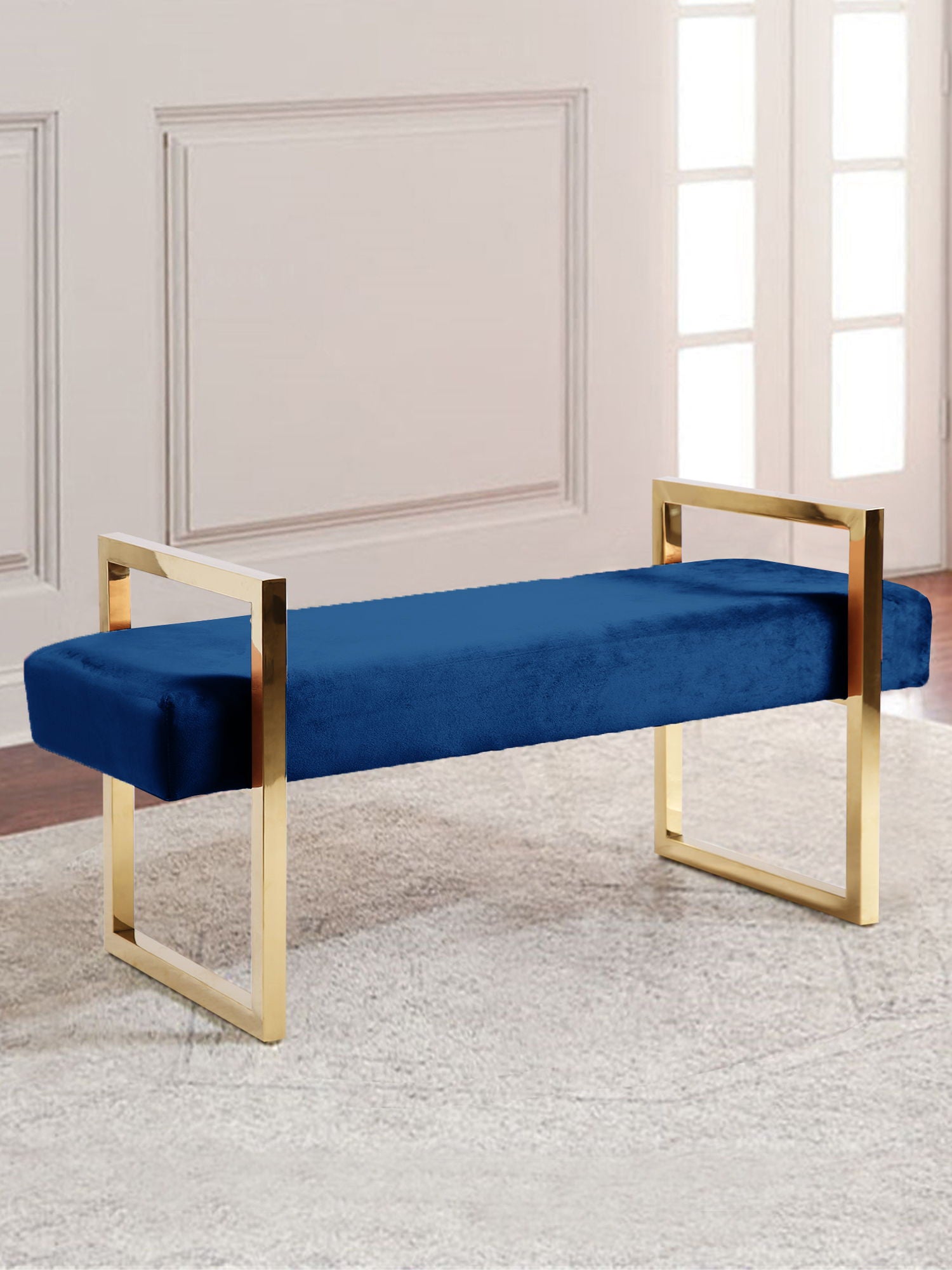 Elegant and eye-catching, this stunning velvet bench from Meridian Furniture is the perfect addition to any space. Thick velvet covers the comfortable seating area. Strength and stability is ensured by the stunning stainless steel legs, which feature a beautiful finish.