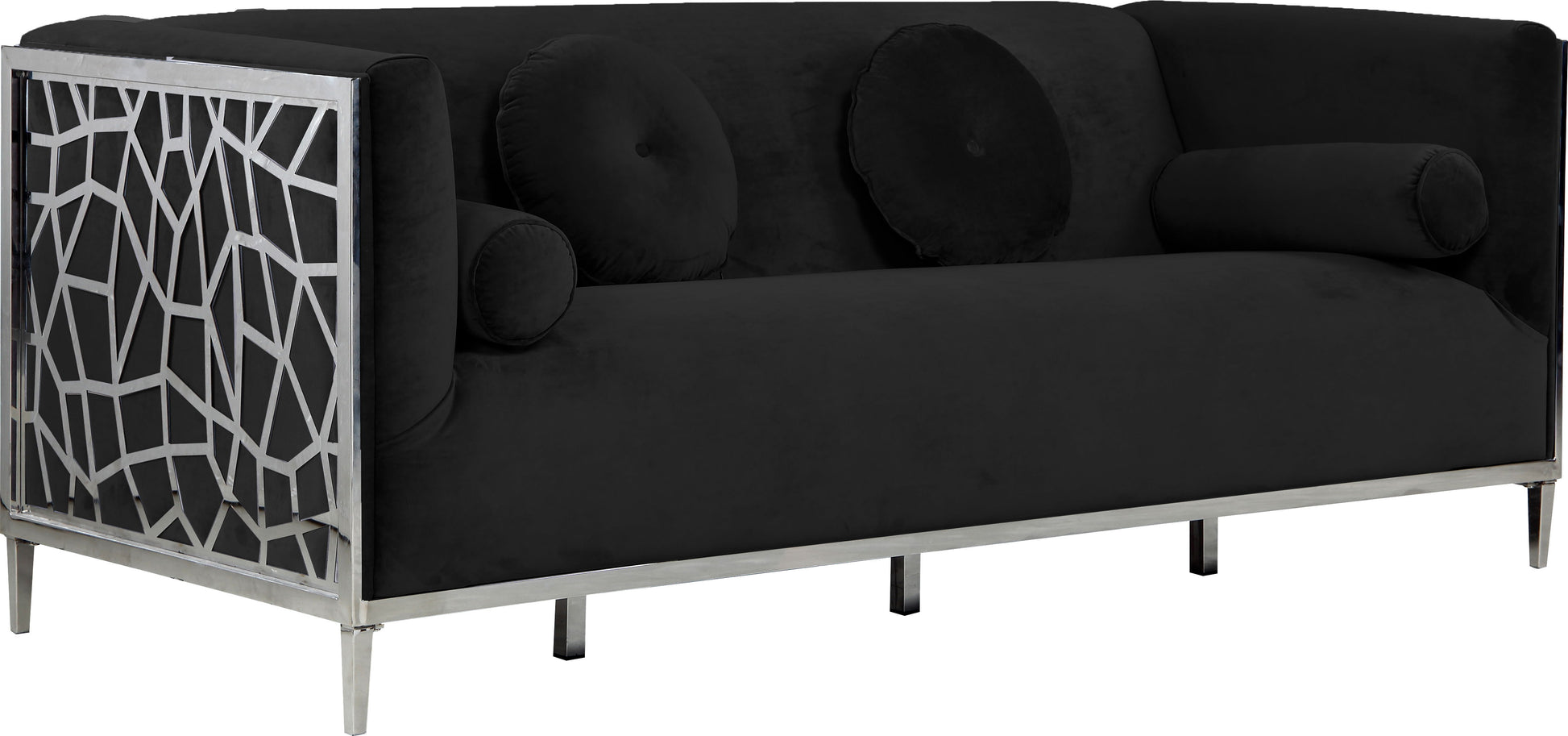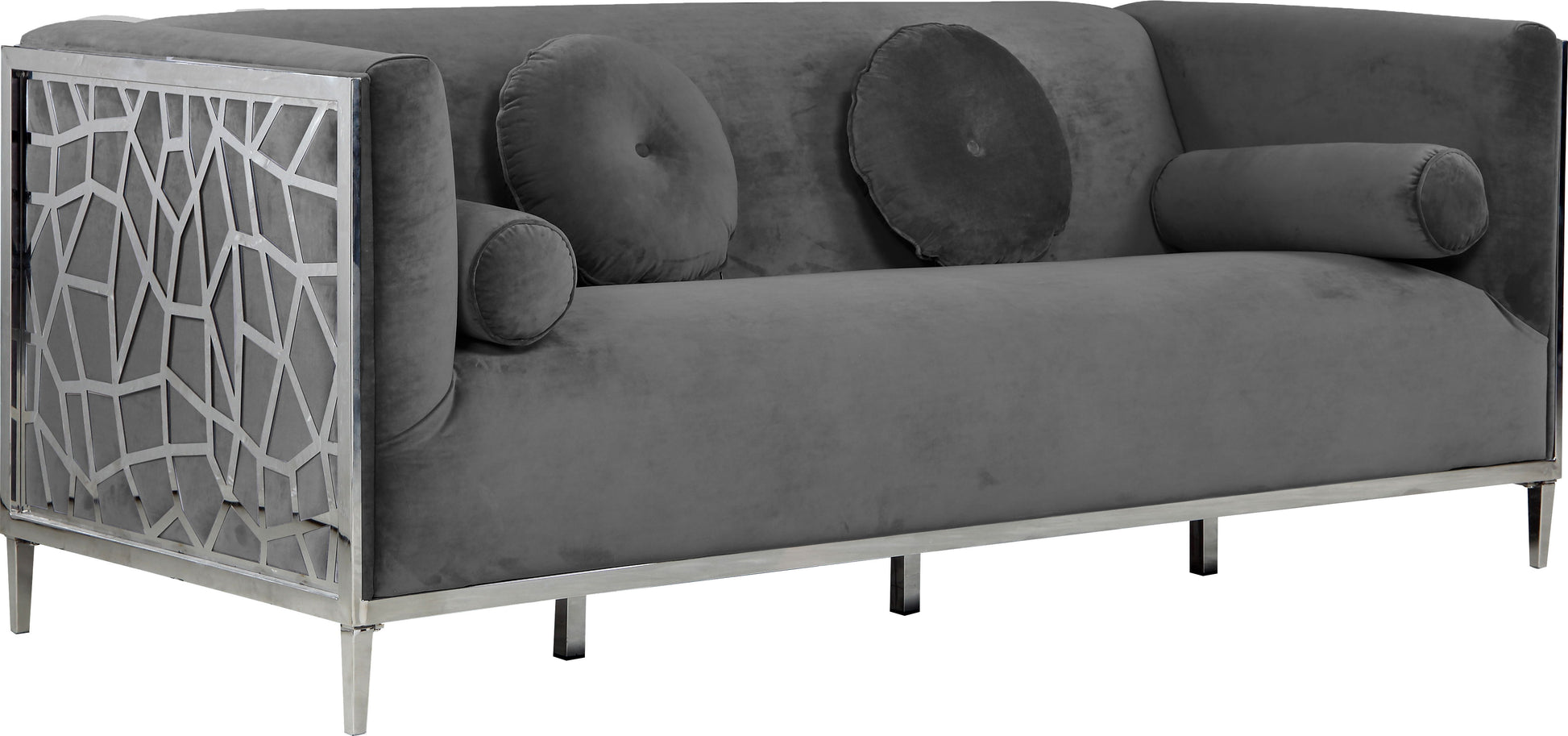 Catch the eyes of all who step foot in your home with this bold Opal velvet sofa. Its stainless steel patterned design creates a contemporary flair against its plush, velvet upholstery, creating a home accent piece that is both comfy and stylish. Its roomy design offers ample room to kick back and relax after a long day, while its stocky shape adds a daring touch to your decor.