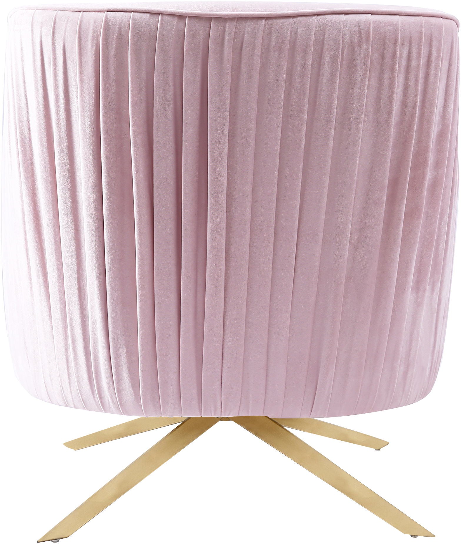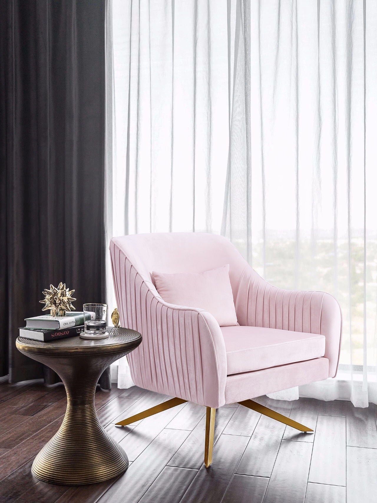 Add a bold touch to your living space with this velvet Paloma accent chair. Its roomy design, plush cushions and pillows ensure comfort while you sit, and its unique color is sure to catch the eye of all who visit your home. Soft velvet upholstery satisfies your textural senses, and a metal swivel base adds elegance while enabling you to turn freely while you sit and read your favorite book or drink a hot mug of coffee.