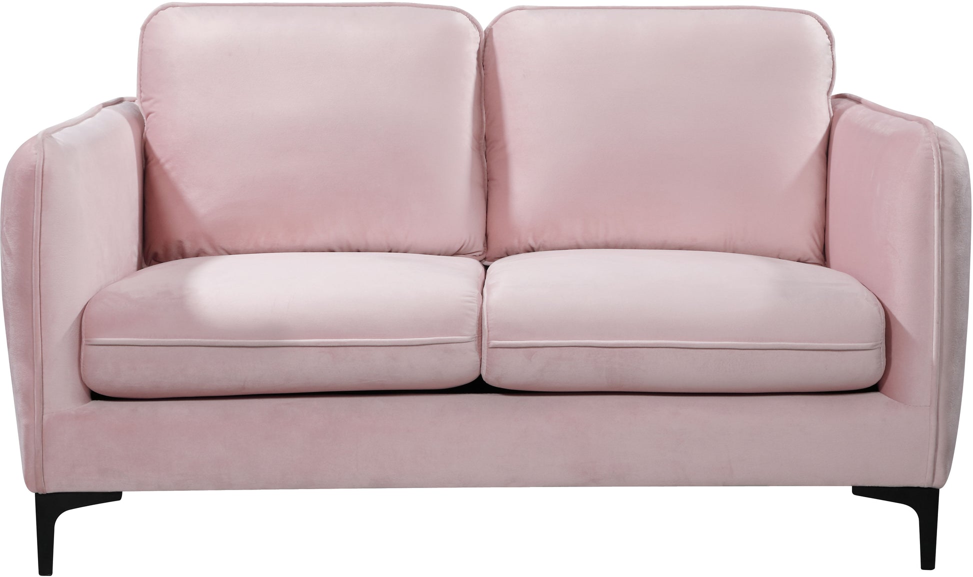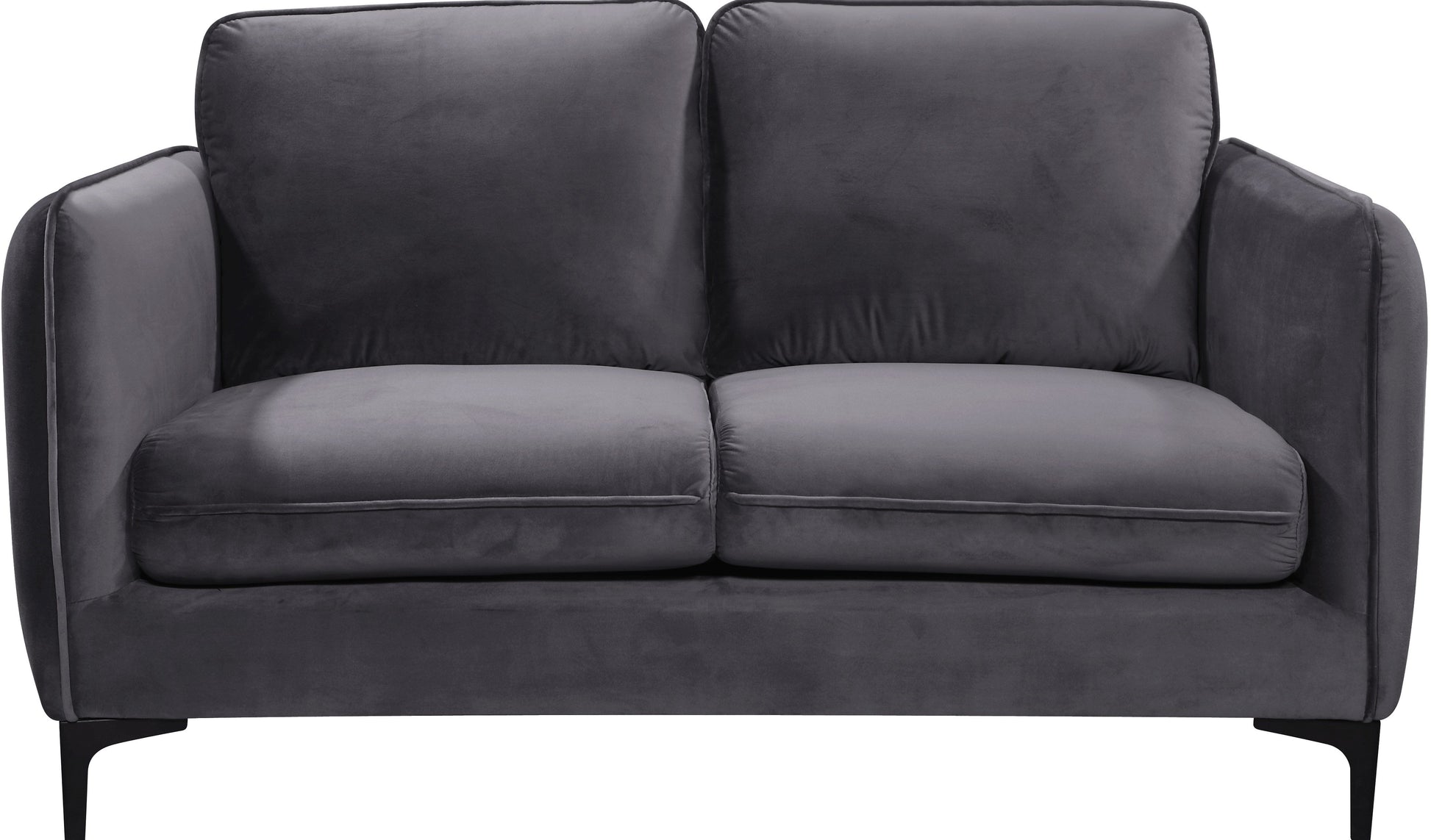 Transform your living space into a chic haven with this stunning Poppy Loveseat from Meridian Furniture. velvet upholstery creates a soft, luxurious space for you to curl up with a book or in front of the TV on a rainy day, or just kick back and relax after a long day at work. Its plush back cushion offers ample support for your back while adding to the loveseat's contemporary design, and matte metal legs pull the piece together, making it a stylish choice for any room.