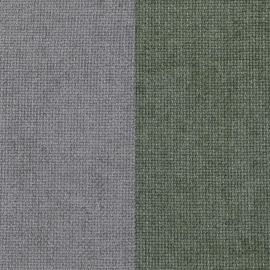 Impeccable comfort is paired beautifully with sleek, clean lines and compelling curvature. A sloping, rounded arm extends to one side, with a chaise on the other, perfect for lounging. Green accent pillows add depth and detail to soft grey upholstery, creating a soothing ambiance for your refined living room.
