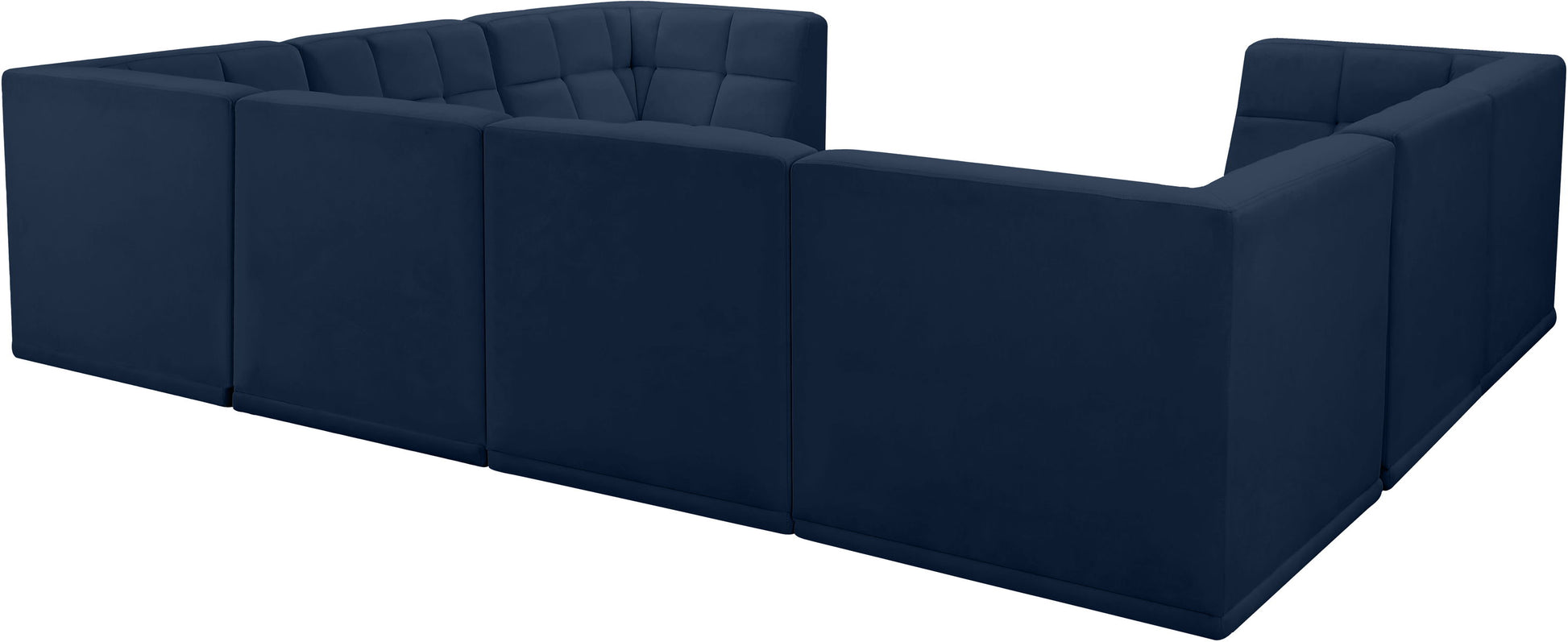 Bolster a contemporary vibe in your living room with this Relax navy modular sectional. Soft navy velvet upholstery offers delicate comfort, making this sectional cozy for anyone who sits in it. Biscuit tufting gives this sectional texture and a modern style, adding extra comfort and elegance to your living space. It s modular design allows you to create infinite configurations, making it a versatile piece to add to your home. A latch underneath the sectional makes it easy to attach to other pieces.