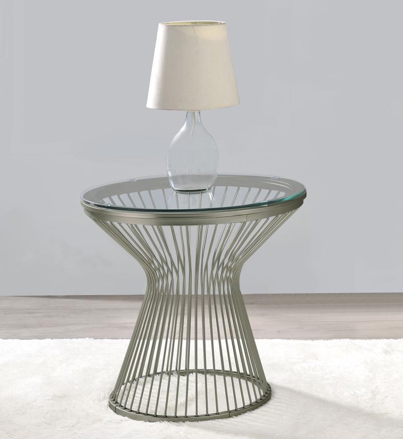 End table, satin nickel, 23.50"dia x 24.00"h.