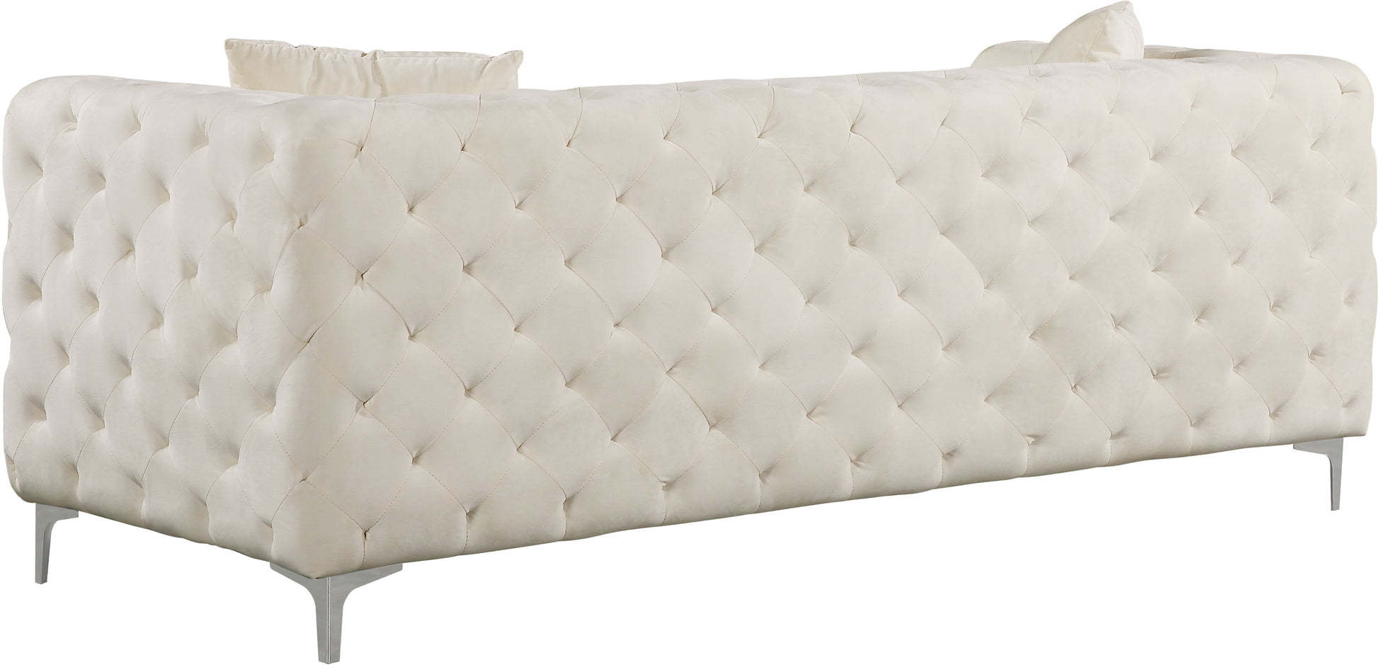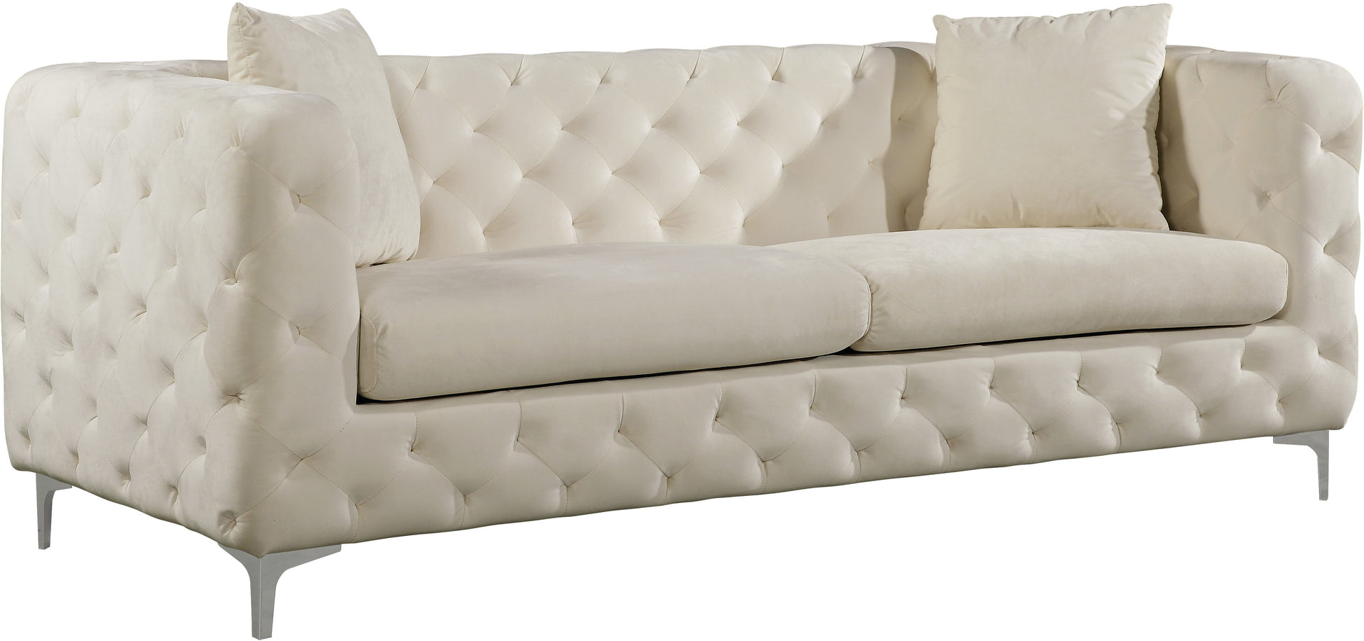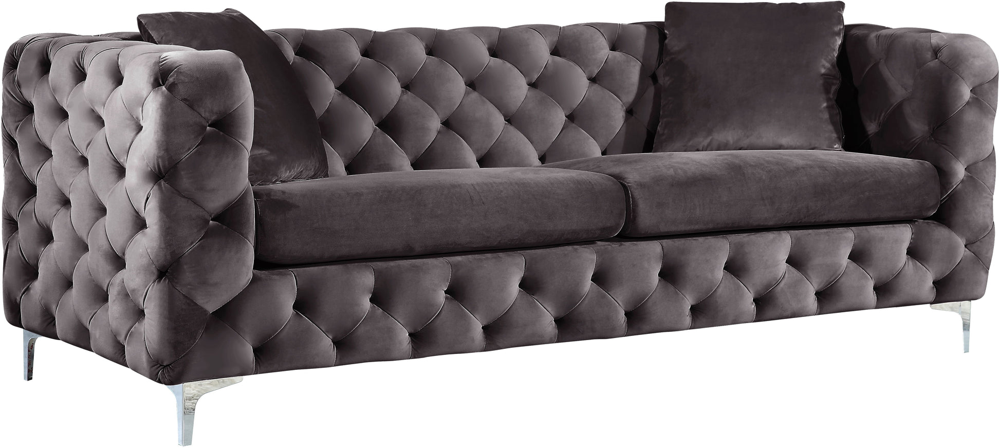 Sink into the welcoming comfort of this Scarlett velvet sofa. This sofa defines elegance and sophistication with its boxy retro look and its deeply tufted upholstery that covers every inch of the sides, back, and front. The velvet material feels luxurious to the touch while thed legs lend the sofa sturdy support and a modish finish. Pair it with other items in the Scarlett collection for a complete look.