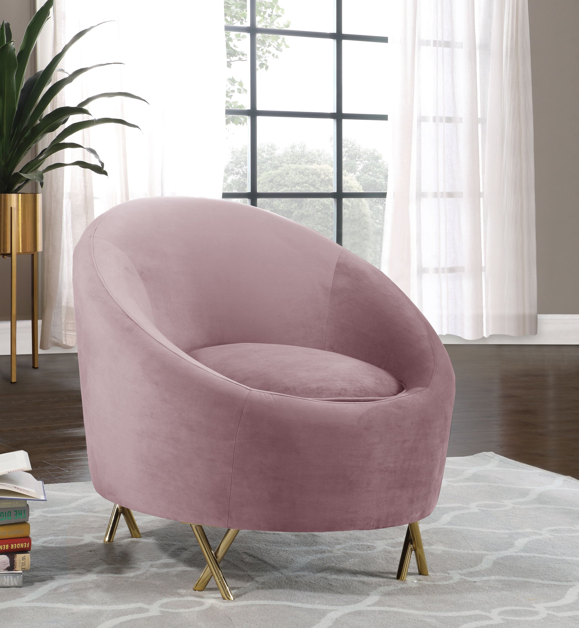 Give your living space a bold touch with this Serpentine velvet chair. This roomy chair features lush velvet upholstery that offers a soft, comfy place to rest that is pleasing to your senses, while its rounded, contemporary design mixes style and comfort. steel legs complement the chair's color, giving it an elegant touch that's perfect for your chic home decor. Place this chair in a corner or next to an end table for additional seating options in your living room or den.