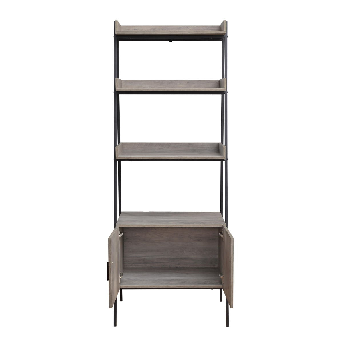 Give your living area smart storage and stylish display with the Zakwani bookshelf. Lean against the wall at a perfect 90° angle, this piece boasts a ladder design that is sure to catch the eye. The wooden storage section enhances the clean lines of the bookshelf's metal frame, creating a beautiful contrast that adds interest and character to your space. It offers four-tier display shelf and a bottom cabinet for holding odds and ends around the house.